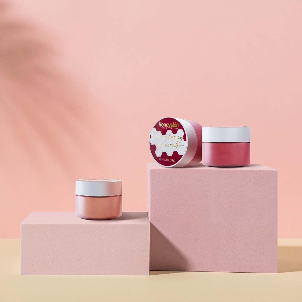 Sucrose (Fine Sugar): Natural & gentle skin care exfoliant that removes dead skin cells. Theobroma Cacao (Cocoa) Seed Butter: Natural emollient rich in antioxidants that add a protective hydrating layer to lips. Simmondsia Chinensis (Jojoba) Seed Oil: Naturally-derived oil that nourishes & heals dry lips. Olea Europaea (Olive) Oil: Naturally derived oil that hydrates & relieves cracked & chapped lips. Ricinus Communis (Castor) Seed Oil. Therapeutic oil that helps retain skin moisture to promote lip hydration. Euphorbia Cerifera (candelilla) Wax. Vegetable wax that contributes shine & gloss to lip products. Tocopheryl Acetate: Stable form of Vitamin E that relieves chapped, dry lips while promoting cell turnover. Synthetic Fluorphologopite: Bulking agent & a viscosity-increasing agent. Titanium Dioxide: Natural mineral that provides the solid color required for an effective lip liner, full lips, or 3D effect. Iron Oxide: Natural mineral that adds pigment to skincare while protecting the skin from visible light. Tin Oxide: Brightening compound that helps even out skin tone while balancing pigments in products. Vanilla Flavor Oil: Natural oil that gives lips shine & a soothing and calming scent. Honey Flavor Oil: Natural oil that plumps the lips & provides long-lasting moisturization. Cherry Flavor Oil: Natural oil that keeps skin moisturized & smooth. Leptospermum scoparium (Manuka) mel: Natural ingredient that disinfects & helps heal cracked, chapped lips & lip-related wounds. Stevia Rebaudioside A: Plant-derived sweetener. Mentha arvensis (Peppermint) Oil: Naturally-derived oil that helps heal cracked lips while creating a swelling effect to make lips appear fuller. Rosmarinus officinalis (Rosemary) Oil: Naturally-derived oil that has moisturizing properties to help chapped lips while preventing dryness. Mentha Viridis Leaf Oil (Spearmint): Naturally-derived oil that moisturizes lips with soothing & cooling effects. [*Organic Ingredients]