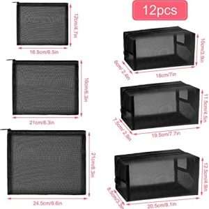 12 Pieces Mesh Cosmetic Bags Mesh Makeup Bags Mesh Pouch Travel Organizing Zipper Pouch Black Nylon Toiletry Pen Pencil Organizer Case For Travel Home Office Accessories, 6 Sizes